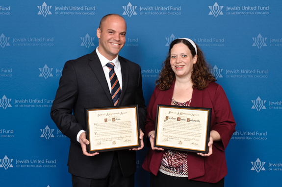 Caroline Musin Berkowitz and Erez Cohen received Samuel A. Goldsmith Awards, given to exceptional young professionals who have shown outstanding performance at a Jewish agency in the Chicago area.
