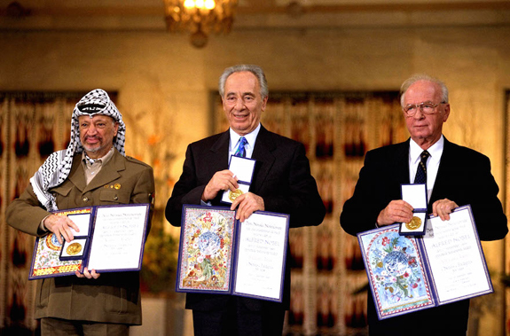 “Israel’s role in the Middle East should be to contribute to a great, sustained regional revival,” Peres said upon accepting the prize. “A Middle East without wars, without enemies, without ballistic missiles, without nuclear warheads.”