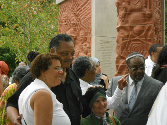 Rev. Jesse Jackson, Rabbi Capers Funnye (right) and others in front of the MLK Monument.