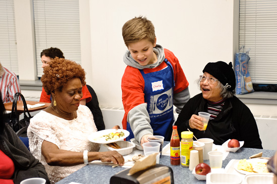 Volunteers serve food at JUF’s Uptown Cafe on Sunday, April 10 as part of Good Deeds Day in Chicago. (Photo by Robert F. Kusel)